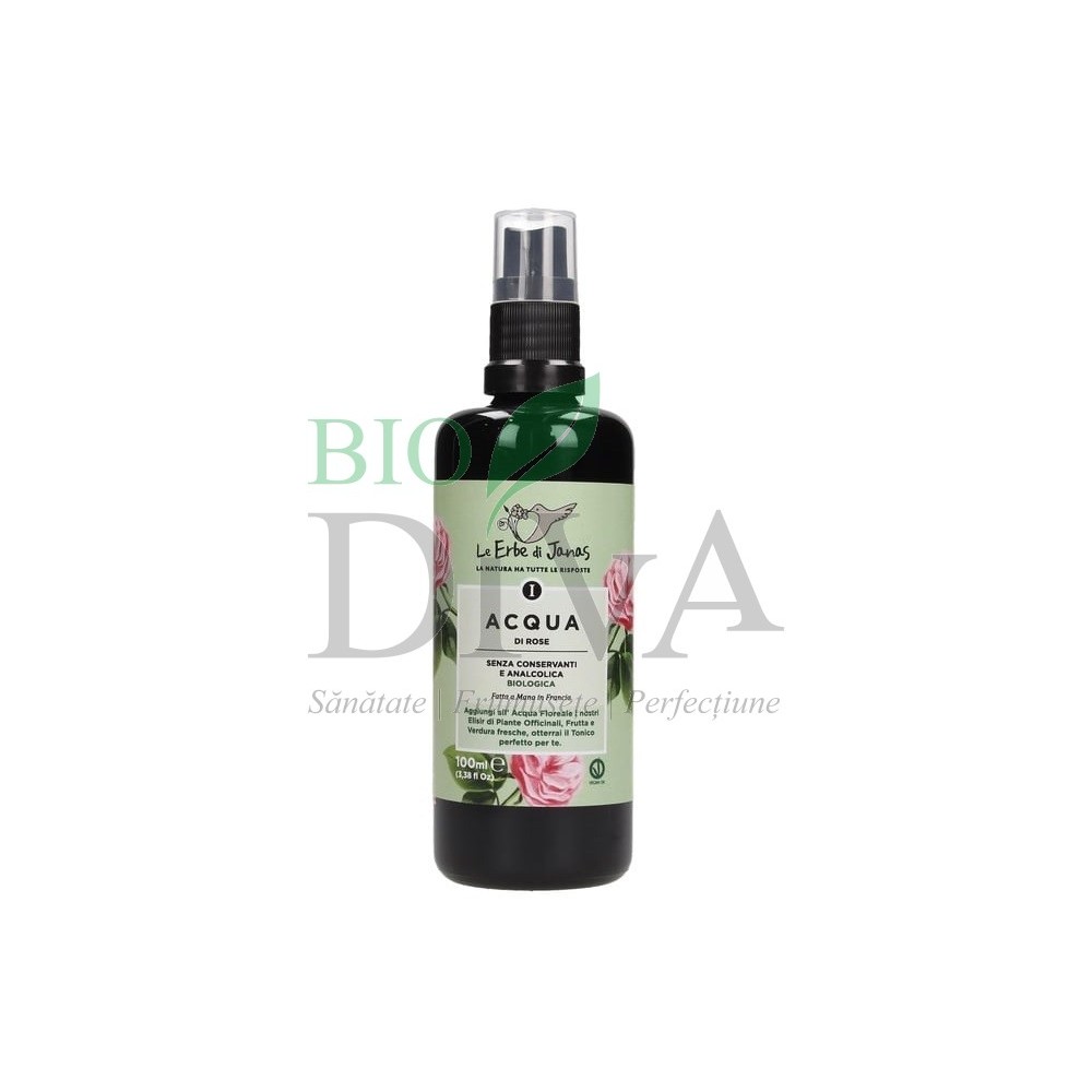 Apa florală de trandafir Le Erbe di Janas este ideală pentru toate tipurile de ten. Produsul are numeroase beneficii pentru piele: este astringentă, lenitivă, revigorantă și are efect antirid. Se poate folosi și pentru atenuarea pungilor de sub ochi (se înmoaie 2 dischete de bumbac în apă de trandafir și se aplică pe pleoape cel puțin 2 minute). Folosită împreună cu uleiul de migdale sau cu un alt ulei vegetal, apq de trandafir devine un excelent demachiant pentru ten, inclusiv pentru ochi.