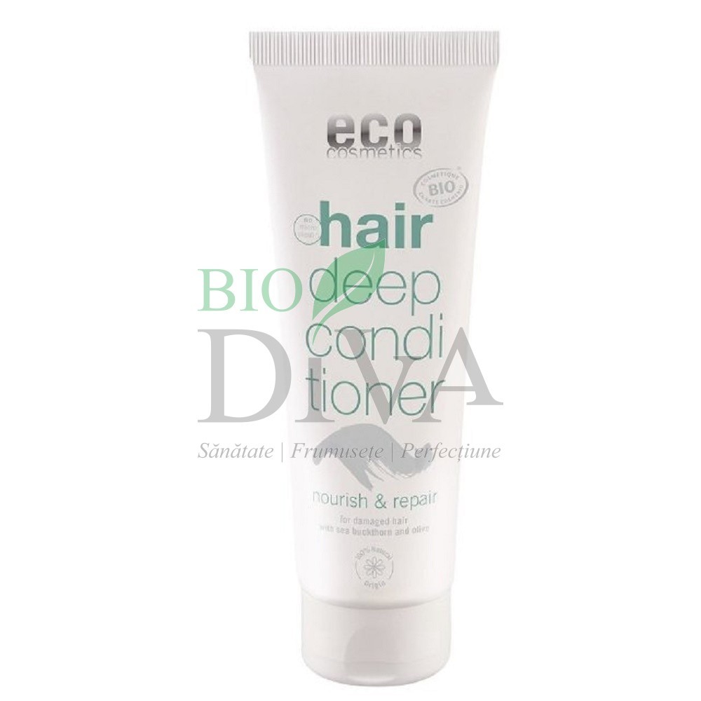 Balsamul de păr intensiv cu ulei de măsline și cătină Eco Cosmetics este îmbogățit cu ulei de jojoba și de măsline, balsamul intensiv revitalizează scalpul și protejează firul de păr, lăsându-l moale, mătăsos și bine hidratat. Recondiționează și descurcă părul cu ajutorul proteinelor din grâu și al uleiului de măsline, fără însă să îl lase tern și lipsit de volum. Uleiul de cătină este deosebit de bogat și hrănitor pentru scalp, îngrijindu-l în mod natural, fără substanțe agresive. Uleiul de jojoba accelerează procesul de regenerare, în timp ce uleiul din broccoli previne apariția varfurilor despicate.