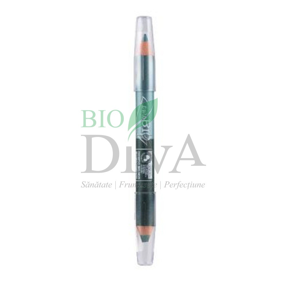 Creion de ochi Duo pentru un machiaj de seara natural fara cusur. Format dintr-un creion kajal verde albastrui si un creion fard de pleoape verde smarald perlat defineste conturul ochilor si accentueaza privirea. Creioanele au o textura catifelata, ofera o culoare de durata, defineste forma ochilor. Creionul contine uleiuri vegetale care hidrateaza si protejeaza zona delicata a ochilor si vitamina E cu proprietati antioxidante. Testat pentru nichel. Fardul de pleoape verde smarald contine: ulei de soia bio, ulei de migdale dulci bio, ceara candelilla, ceara de canauba bio, vitamina E, pigmenti minerali. Creionul de ochi kajal verde albastrui contine: ulei de migdale dulci bio, ceara candelilla, ceara de canauba bio, ulei de susan bio, vitamina E, pigmenti minerali.