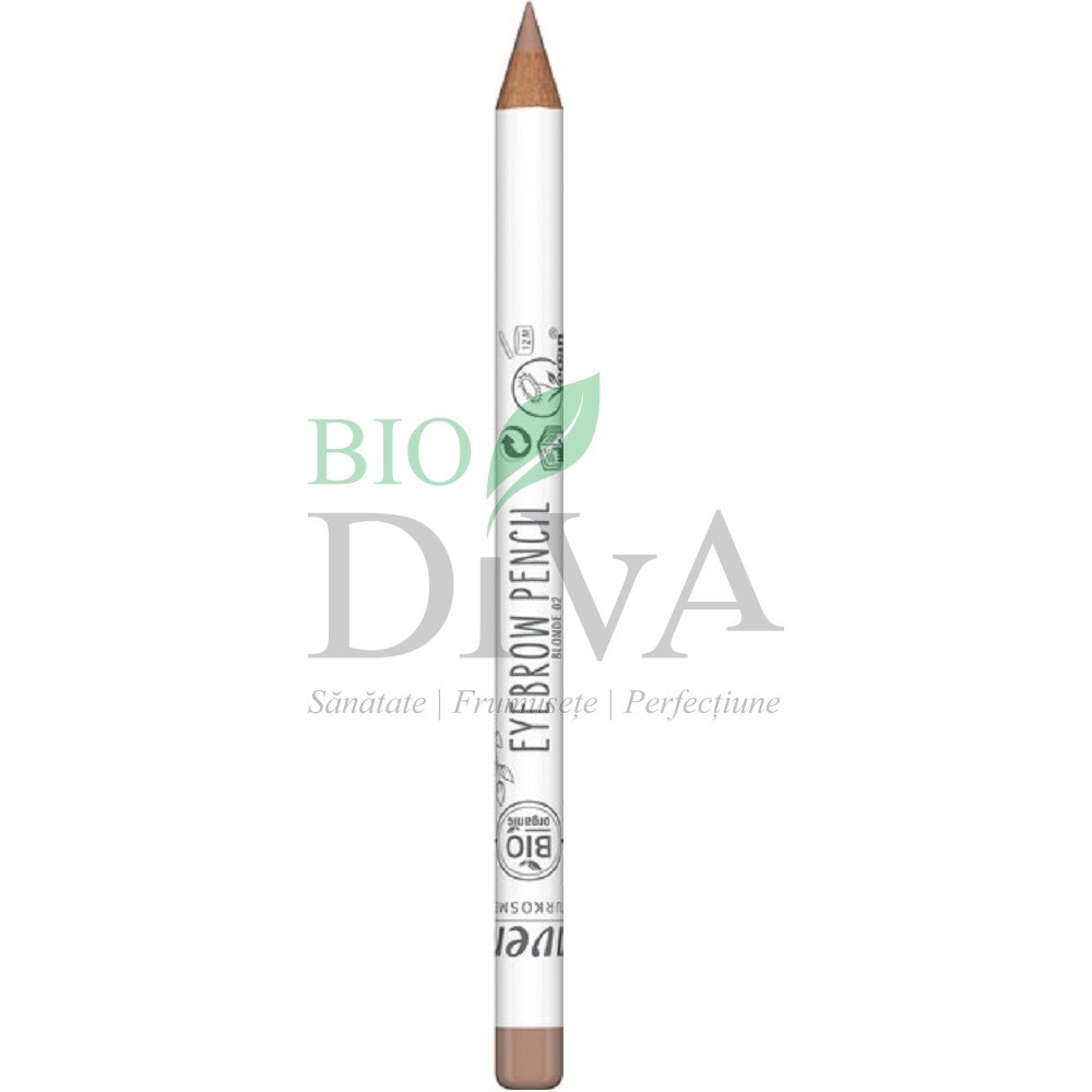 Creionul pentru sprâncene Lavera colorează, definește și umple conturul sprâncenelor. Ingredientele creionului sunt atent alese: ulei de jojoba, unt de shea organic, vitamina E, pentru extra hidratare. Poate fi folosit și de persoanele care poartă lentile de contact. Creionul de sprâncene Lavera vine în două variante de culoare Brown 01 (maro mai închis) și Blond 02 (maro mai deschis). Permite aplicarea precisă.