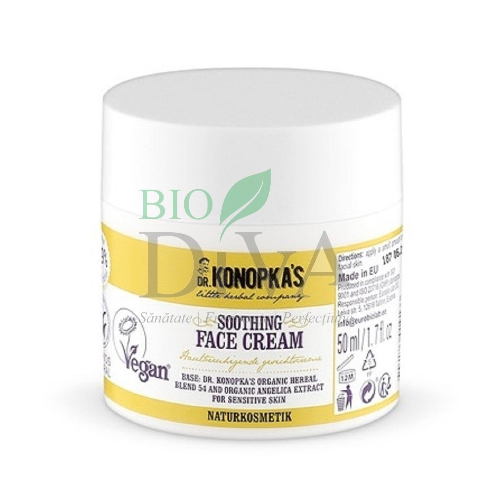 Crema de față anti-iritații pentru ten sensibil Dr. Konopka este recomandată pentru tenul sensibil. Conține esență vegetală nr. 54, vitamine și nutrienți esențiali pentru îngrijirea pielii sensibile.
