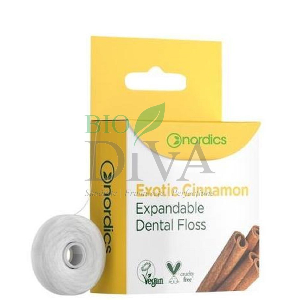 Ața dentară cu scorțișoară Nordics este ideală pentru a vă proteja dinții împotriva cariilor dentare, bolilor gingivale și a tartrului. Utilizarea aței dentare este o rutină importantă pentru a curăța zonele dintre dinți. Ața dentară naturală îndepărtează resturile alimentare dintre dinți. Este de 30 de metri.