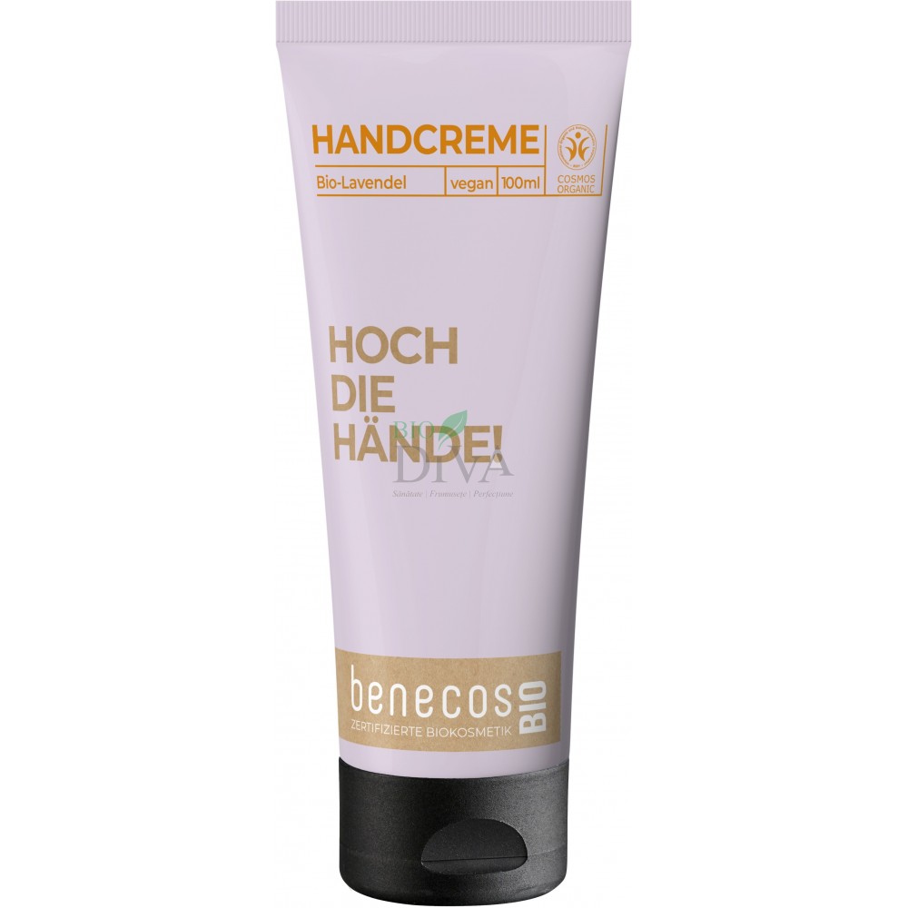 Crema de mâini cu lavandă bio de la Benecos oferă o îngrijire profundă pentru pielea mâinilor tale. Formula sa ușoară și rapid absorbabilă pătrunde imediat în piele, fără să lase urme grase, fiind perfectă pentru utilizare zilnică. Extractul de flori de lavandă bio calmează pielea și oferă un parfum natural, delicat și relaxant. Untul de shea bio hrănește intens și reface bariera cutanată, în timp ce uleiul de jojoba bio ajută la regenerarea pielii uscate. Aloe vera bio adaugă un plus de hidratare, iar sucul de mere bio, provenit din producție locală, contribuie la revitalizarea și tonifierea pielii. Crema este certificată COSMOS ORGANIC, vegană și cruelty-free, cu o compatibilitate excelentă cu pielea, testată dermatologic. Ambalajul este realizat din material reciclat (PCR), fiind o alegere responsabilă pentru un stil de viață sustenabil. Pentru mâini vizibil mai fine și catifelate, folosește crema ori de câte ori ai nevoie, masând ușor până la absorbție.