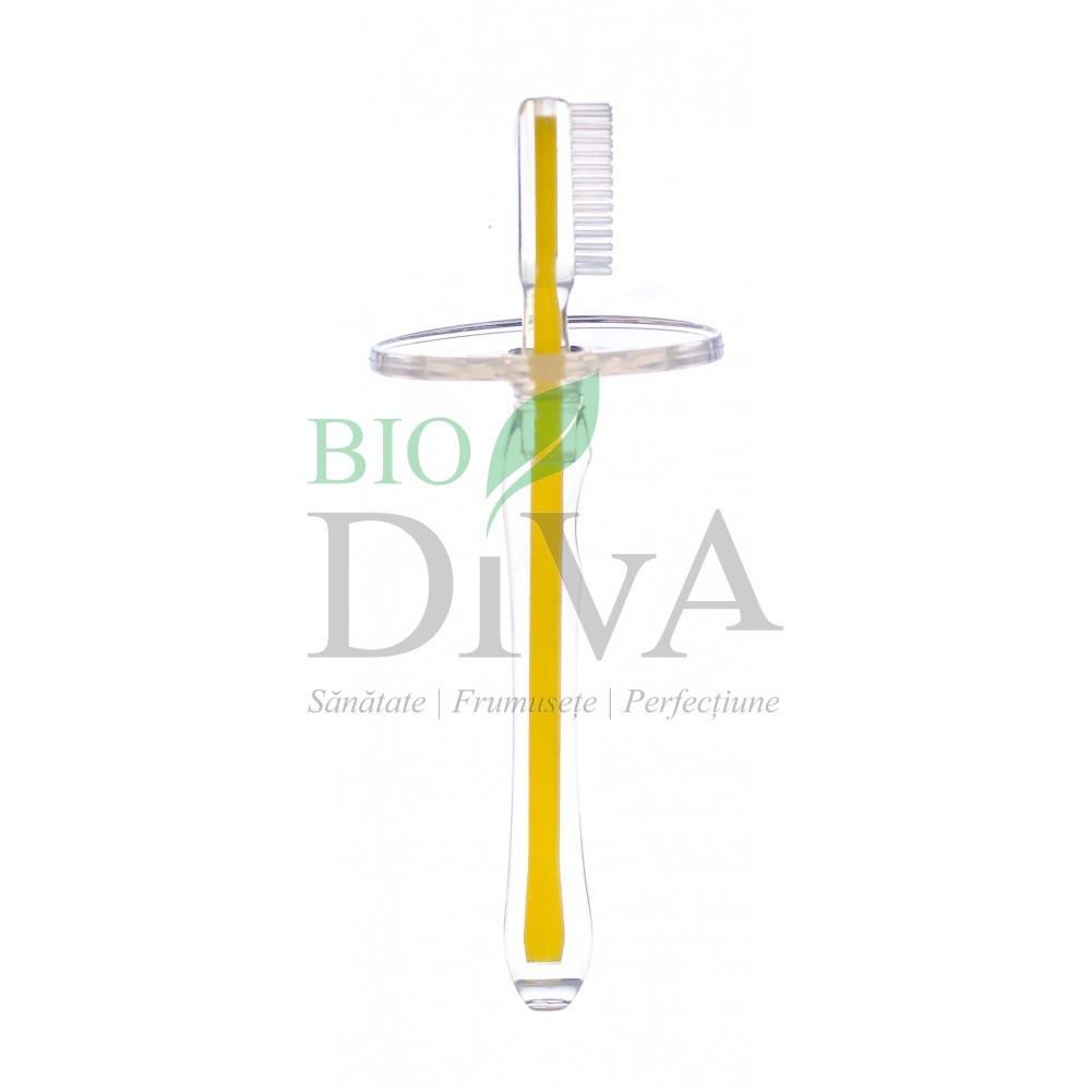 Periuța siliconică de dinți din silicon este ideală pentru bebelușii a căror dinți frontali sau laterali nu au apărut în guriță. Perii moi din silicon sunt blânzi cu dințișorii copilului și cu gingiile lui sensibile. Protecție pentru adulți inclusă.