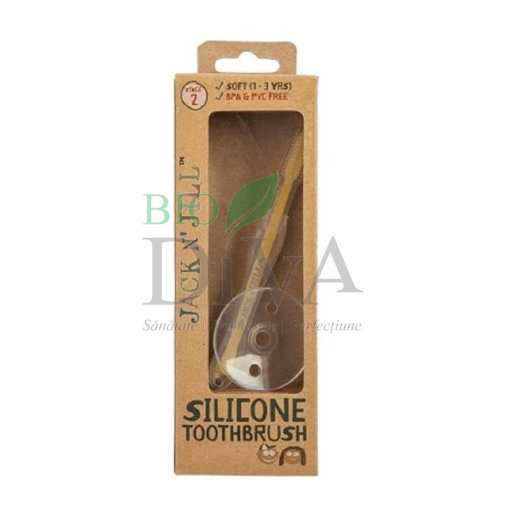Utilizare: înainte de utilizare înserați protecția pe periuța de dinți. Treceți peste capul periutei de dinți protecția prin gaura situată central (este necesară o ușoară presiune). Protecția va rămâne exact după perii periutei. Aplicați o cantitate mică de pastă de dinți naturală Jack N' Jill pe perii periutei și spălați dinții cu grijă folosind mișcări circulare. Spălați-vă pe mâini. Spălați bine periuța înainte și după utilizare, în special perii. Sterilizați periodic periuță în apă fiartă.