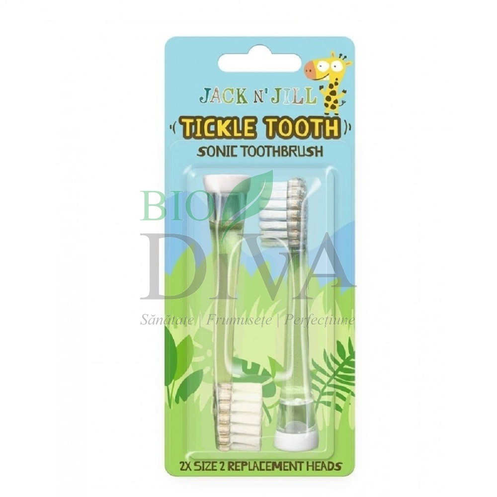 Rezervele pentru periuța de dinți sonică Tickle Tooth de la Jack n' Jill au un aspect drăguț, ce va fi pe placul celor micuți. Medicii dentiști recomandă înlocuirea capetelor o dată la 3 luni (sau mai devreme). Capetele trebuie înlocuite mai repede în cazul în care copilul a fost bolnav, sau în cazul în care sunt deteriorate.