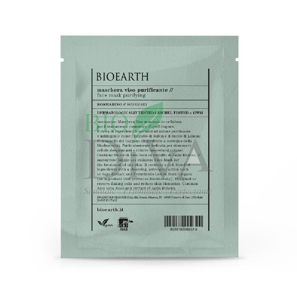 Masca pentru ten purificatoare cu rozmarin marca Bioearth este un adevărat răsfăț natural pentru o piele fără imperfecțiuni și lipsită de impurități. Conține ingrediente naturale cu proprietăți purificatoare (gel de aloe vera, apă florală). Celuloza vegetală se adaptează la reliefului tenului și permite acestuia să rămână în contact preț de 15-20 de minute cu ingrediente active prețioase și benefice pentru piele din fiecare mască. Dacă te confrunți cu un ten impur, gras sau acneic, masca cu rozmarin Bioearth este o alternativă naturală pentru un efect matifiant și purificator. Principii active: aloe vera bio, apă de rozmarin, suc de lămâie Femminello din Gargano și alge. Gama de măști faciale Bioearth din celuloză vegetală conține 9 măști: antirid cu acid hialuronic, cu efect filler, cu celule stem din ulei de argan, hidratantă și energizantă cu suc de mere, lenitivă și hidratantă cu mușețel, iluminatoare antioxidantă cu alge marine, pentru pete pigmentare, purificatoare cu rozmarin, regenerantă cu secreție de melc.