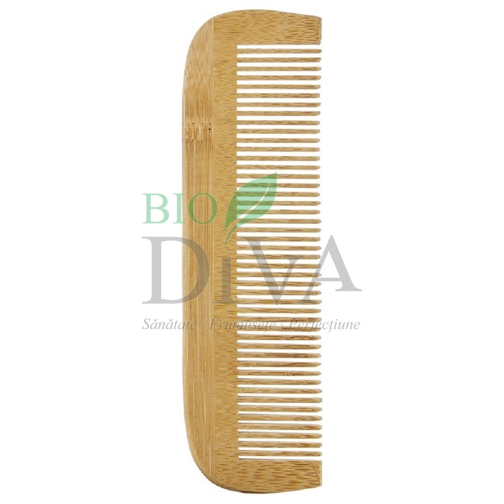 Pieptenele din lemn de bambus cu dinți deși marca Avril este ideal pentru descurcarea părului și crearea de volum. Este perfect pentru taparea și coafarea părului, pentru toate tipurile de păr. Previne electrizarea părului. Dimensiune 17 cm x 5 cm.