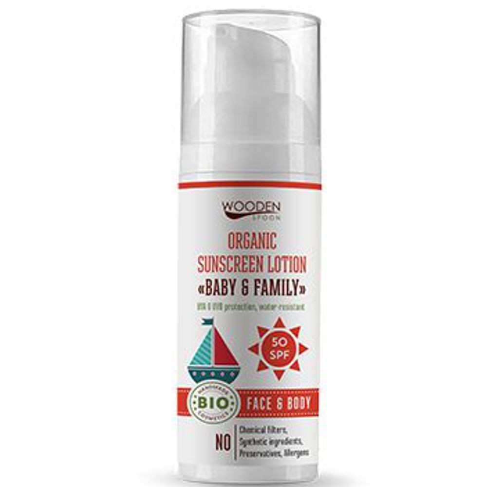 Lotiune 100% naturala cu factor de protectie 50 din gama Wooden Spoon ofera un grad de hidratare si protejeaza eficient si natural pielea de razele solare. Pentru intreaga familie. Produsele cosmetice Wooden Spoon sunt create in sinergie cu natura. Ingredientele nu sunt doar bio, ci au fost atent selectionate si testate timp de mai multi ani. Compozitia produsului nu este diluata, si folosim ca si ingrediente active unturi si uleiuri bio recunoscute pentru calitatile lor cosmetice exceptionale. Produse cosmetice Wooden Spoon nu contin apa, derivate din petrol, substante chimice si conservanti.