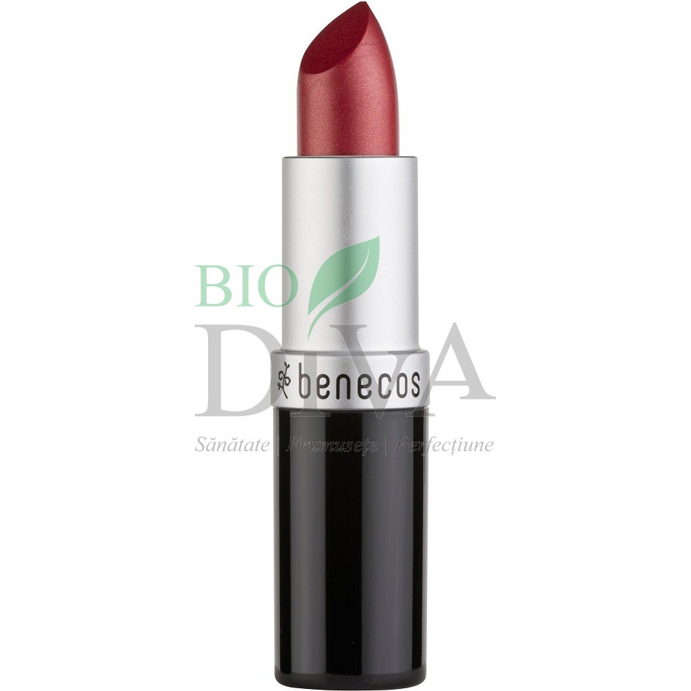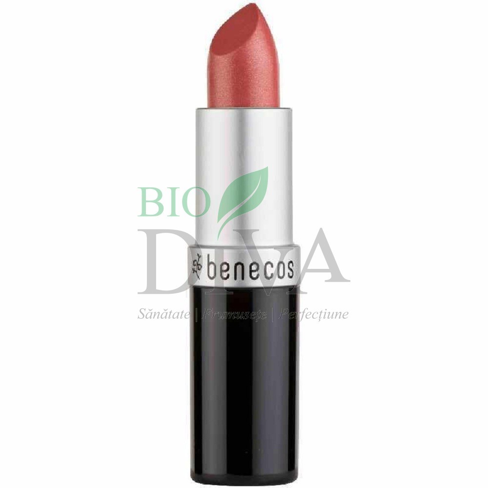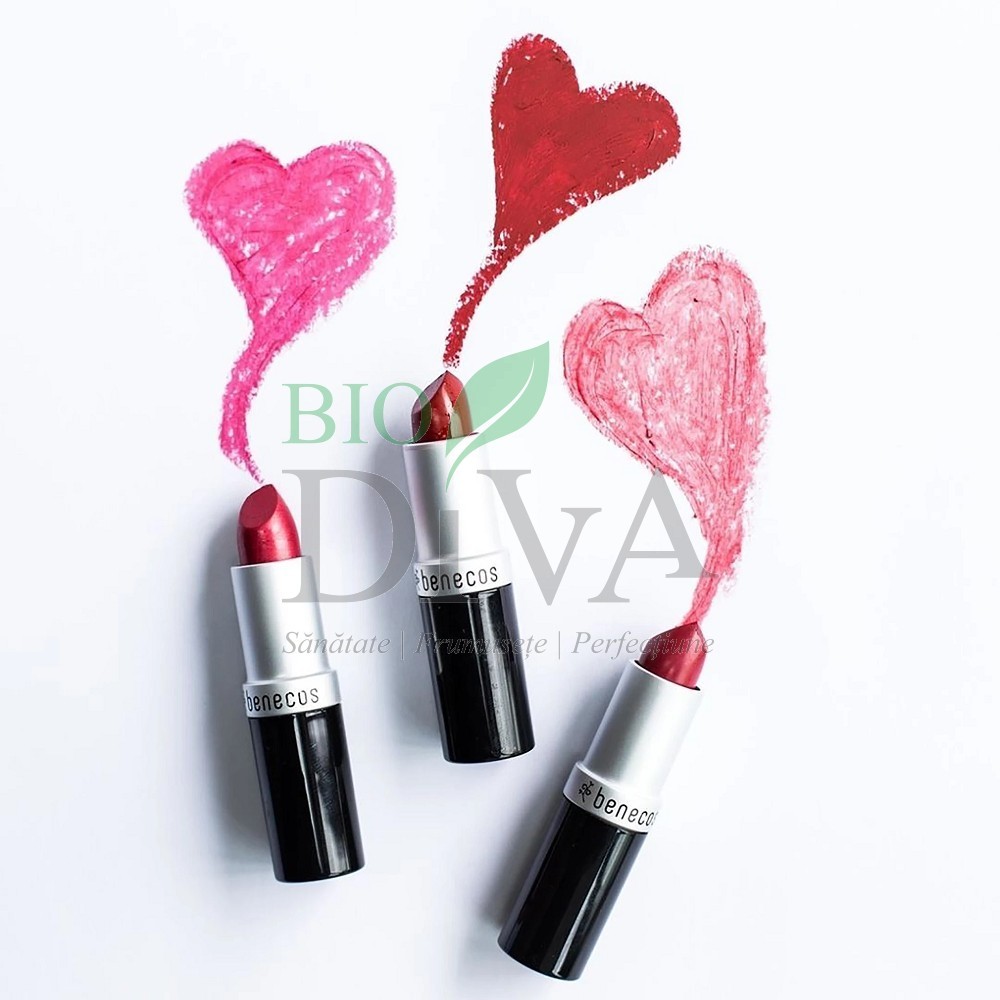 Rujul de buze bio Benecos este un excelent ruj cremos, cu străluciri de gloss, fără sidef. Oferă culoare și volum buzelor. Prin ingredientele sale active - între care uleiul organic de jojoba, uleiul organic de floarea soarelui sau ceară de albine organică - are grijă de buzele tale, le protejează și la conferă un plus de catifelare.
