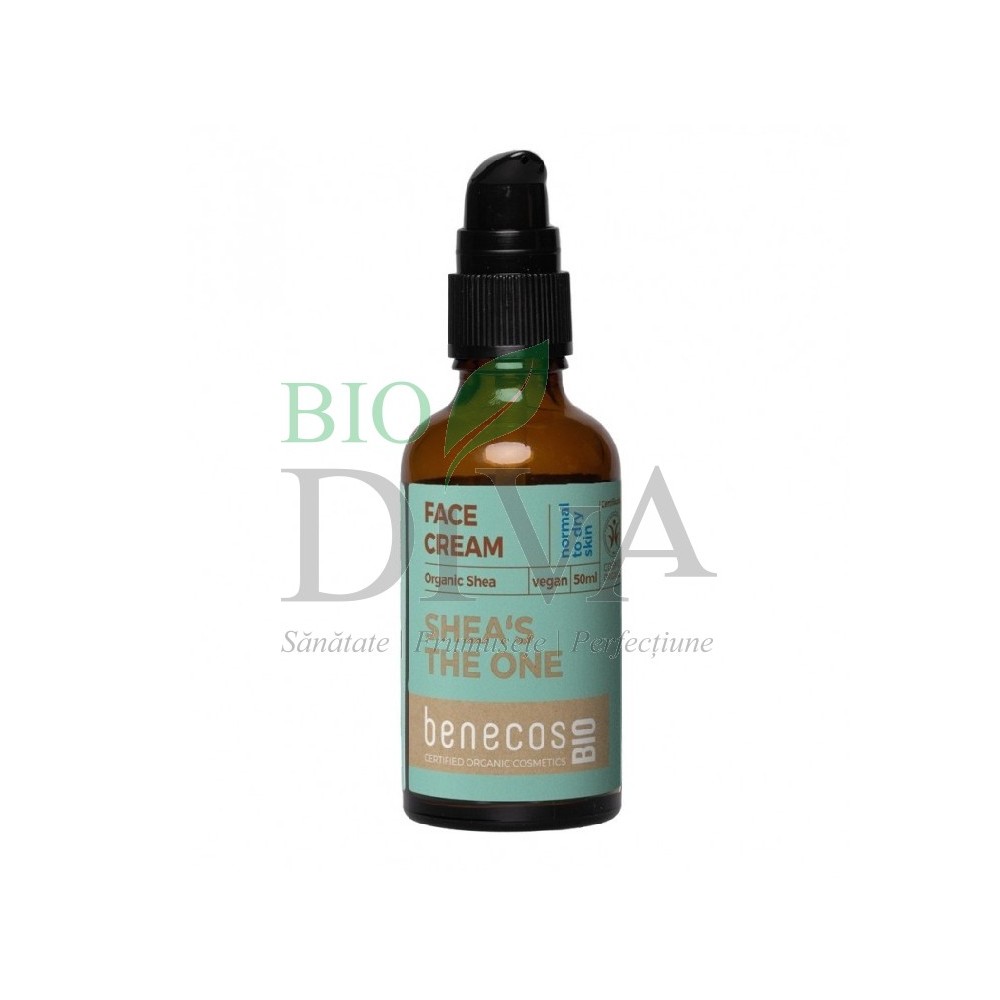 Crema de față nutritivă cu un de shea Benecos este perfectă pentru pielea normală sau uscată. Untul de shea organic regenerator din compoziție are un efect de netezire care păstrează umiditatea pielii și oferă îngrijire intensivă datorită acidului oleic. Extractul organic de hamei are proprietăți antiinflamatorii și calmante.