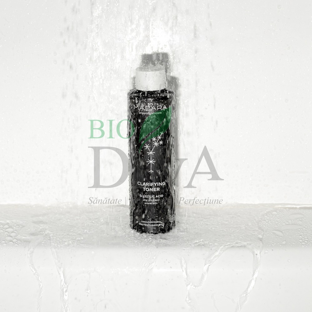 Tonerul purificator pentru ten gras sau cu probleme marca Madara curăță în profunzime tenul gras și porii încărcați. Cu acțiune purificatoare, previne apariția coșurilor și reglează ph-ul natural al pielii. Acest toner echilibrant conține ingrediente naturale care țin sub control sebumul pielii și totodată hidratează. Printre ele se numără extractele din coajă de stejar, rădăcină de obligeană și salvie. Se adaugă apă florală de trandafiri și acid salicilic. După aplicare tenul rămâne curat, fresh și matifiat.